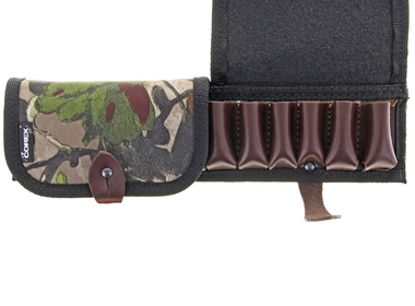 Закрытый патронташ-подсумок на 12 патронов, выполнен из синтетического материала защитных расцветок. Карманы предназначены для патронов 12-16 калибра и выполнены из натуральной кожи в классическом стиле. Также присутствуют 2 клапана, предохраняющих патроны от внешних воздействий и осадков. Надежная фиксация клапана осуществляется с помощью ремешка и металлической пукли.