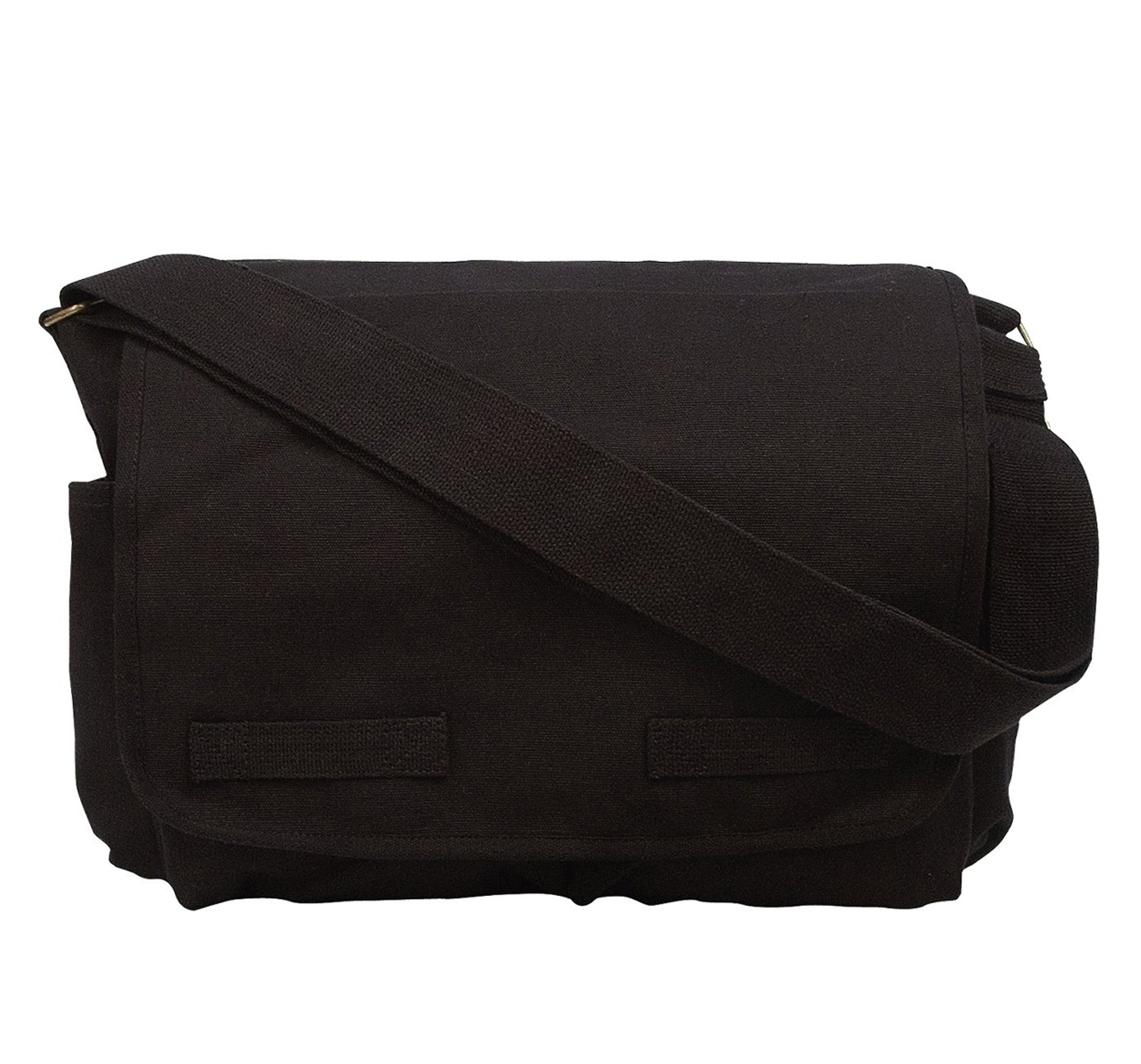 Черная сумка с большой вместимостью выполнена из плотного хлопачтобумажного материала.