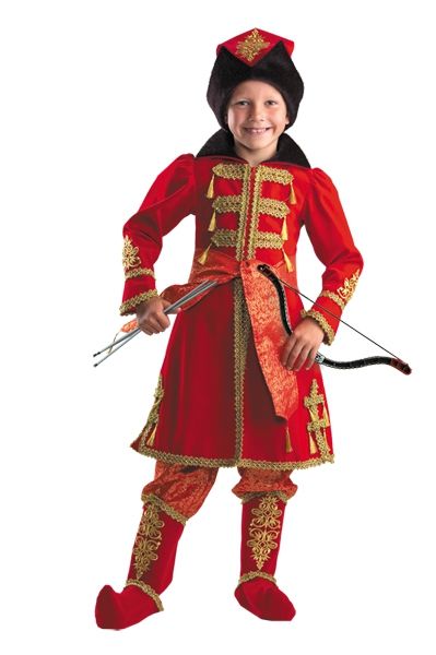 Детский костюм Ивана Царевича доставит вашему мальчику несравненное удовольствие, раскрыв при этом завидные социальные задатки. В комплект входят: кафтан, штаны, сапоги, головной убор, пояс и лук со стрелами.