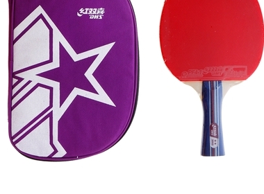 Накладка DHS (с одной стороны - красного, с другой - черного цвета) с губкой толщиной 2,2 мм, пятислойное основание, коническая ручка.