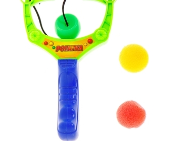 Установите шарик в специальное крепление, натяните тетиву, и снаряд отправиться в полёт. Стреляя из рогатки, чадо разовьёт меткость, мелкую моторику, координацию движений и цветовое восприятие.