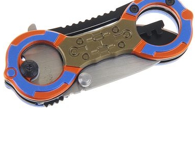 Please specify your question about Нож складной неавтоматический с фиксатором, рукоять сине-оранжевая:
