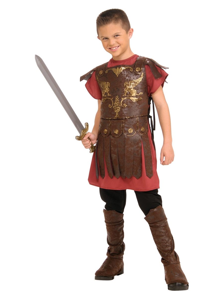 Шикарный детский костюм гладиатора сделает вашего ребенка настоящим победителем и завоевателем римских колизеев и прочих арен. В детский костюм гладиатора входят: туника(доспехи) и штаны с накладками на обувь.
