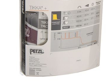 Если вы планируете быстро передвигаться и работать в темноте, обратите внимание на фонарь Petzl TIKKA+. Особенность этой модели — шесть режимов освещения разной дальности, яркости и цвета: